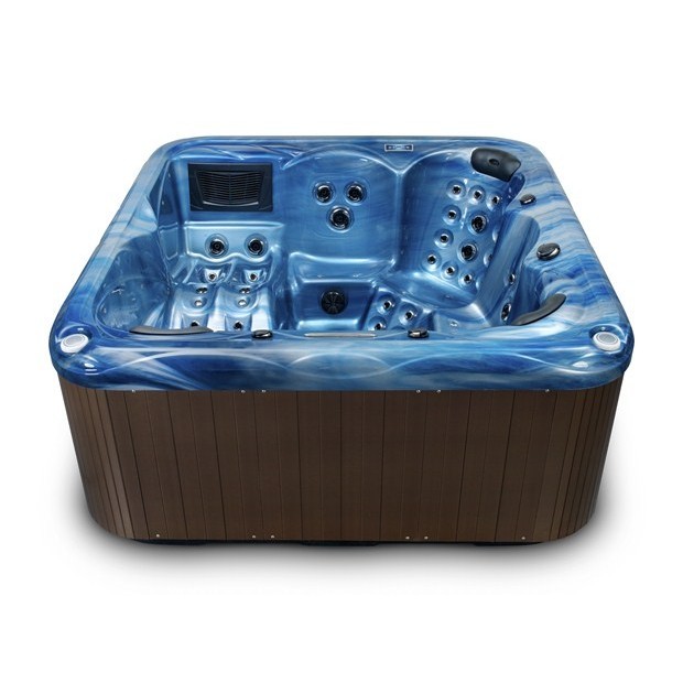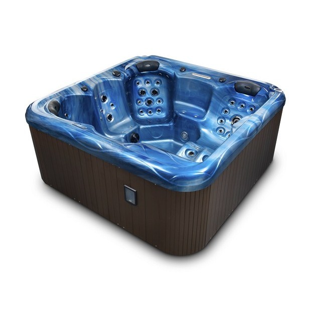 Outside the tub, 10 LED lights built into the cabinet illuminate the area around the hot tub.